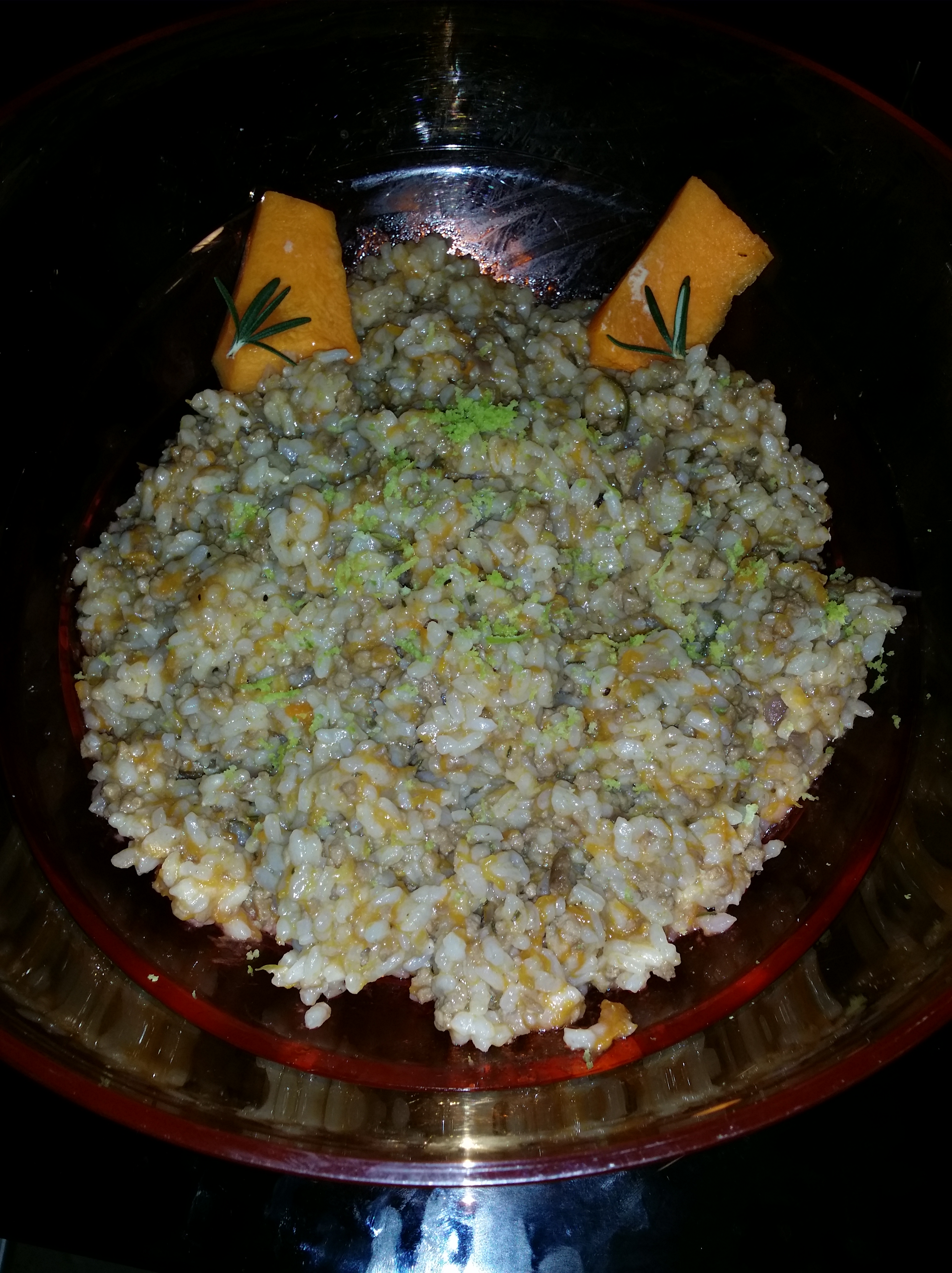 Risotto elaborato ma veloce e gustoso con intensi profumi aromatici.