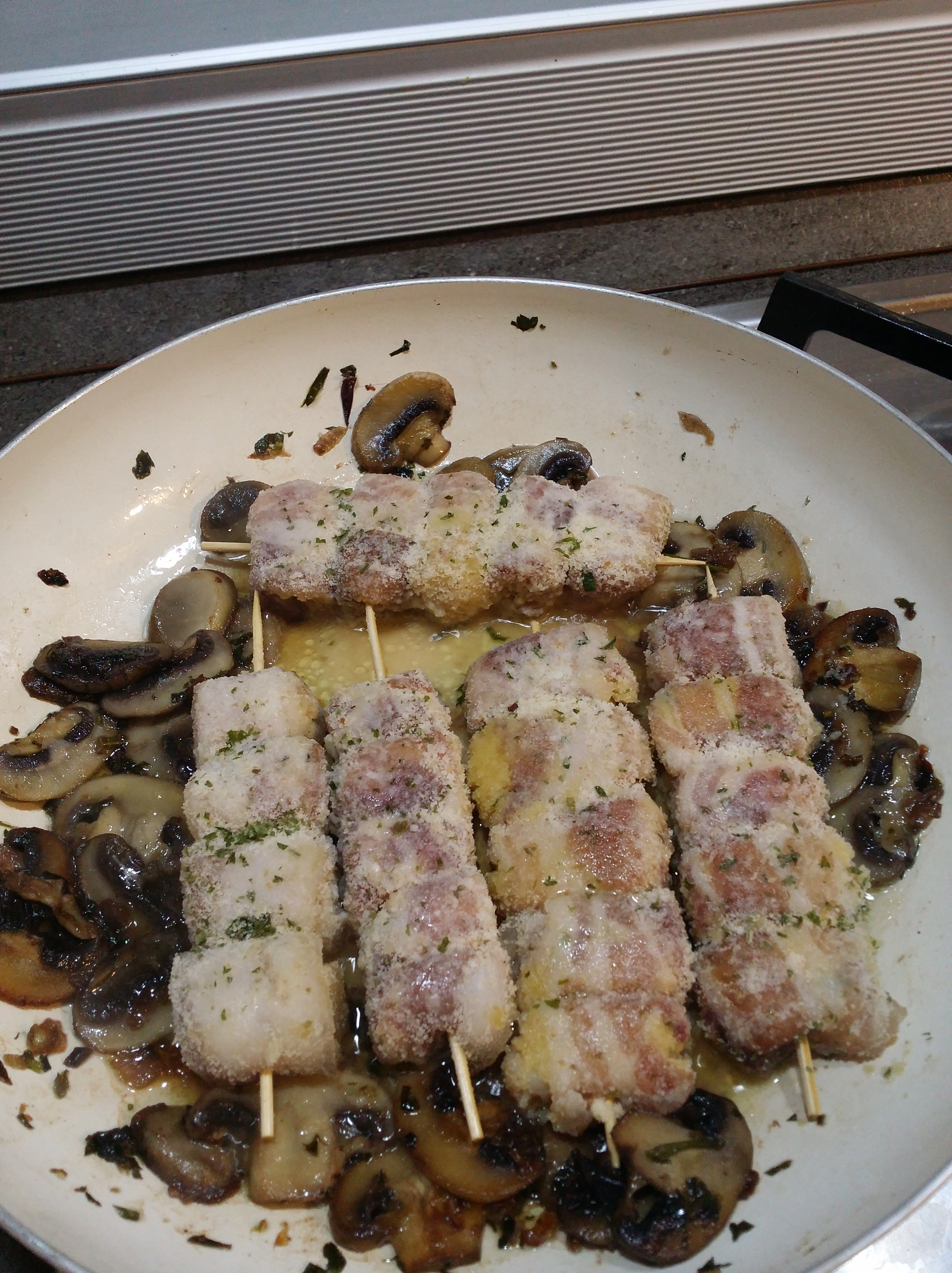 Quando il fondo si sarà ritirato togliete i funghi e mettete nello stesso fondo gli involtini, coprite e lasciate cuocete per altri 10 minuti, magari aggiungendo del burro o dell’olio. A fine cottura rimettete i funghi e fate amalgamare bene.