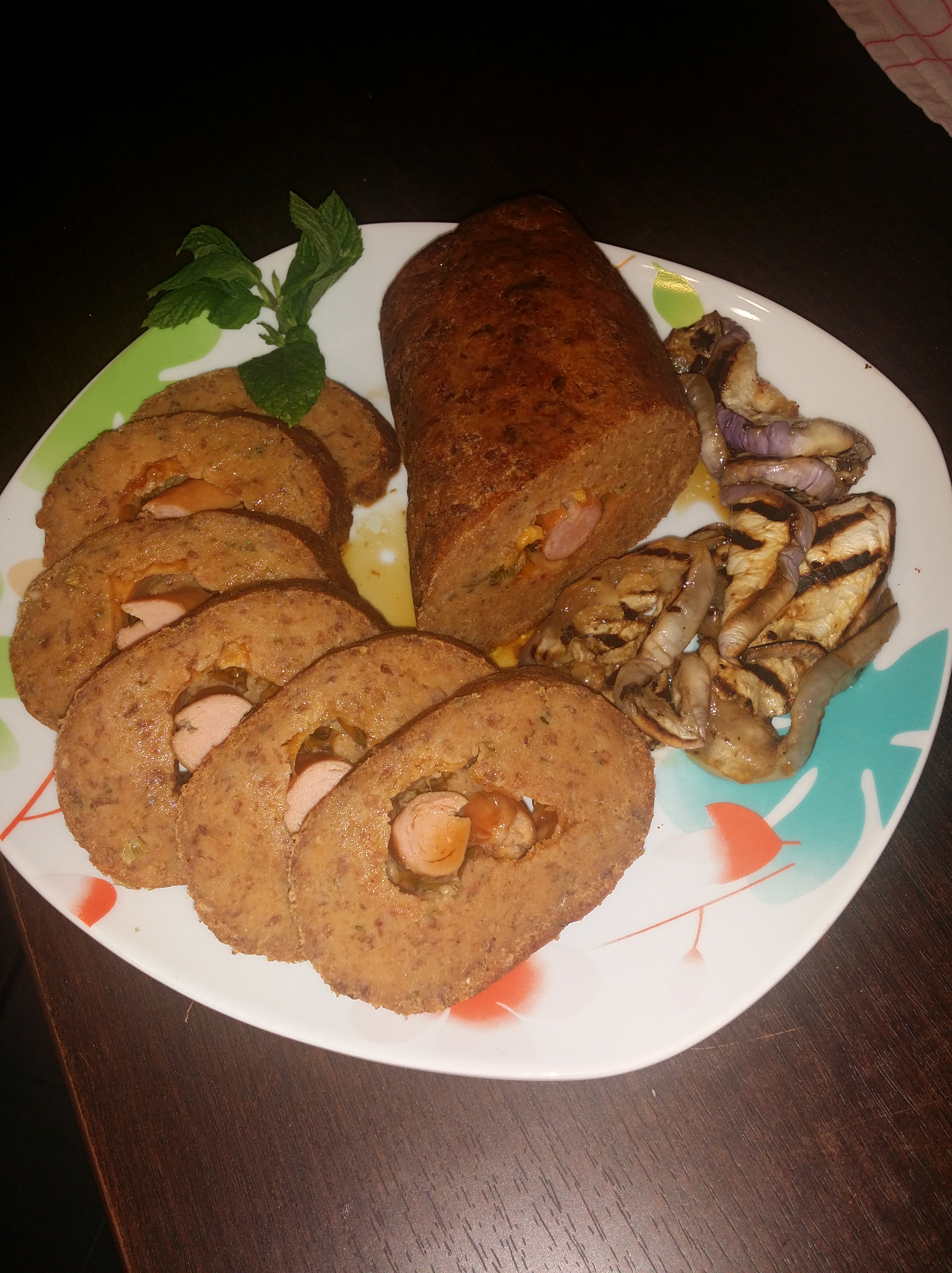 Ieri ho preparato il polpettone ai miei figli, l’ho farcito con wrustel e melanzane arrosto, ed accompagnato con le stesse melanzane condite con olio e menta fresca.