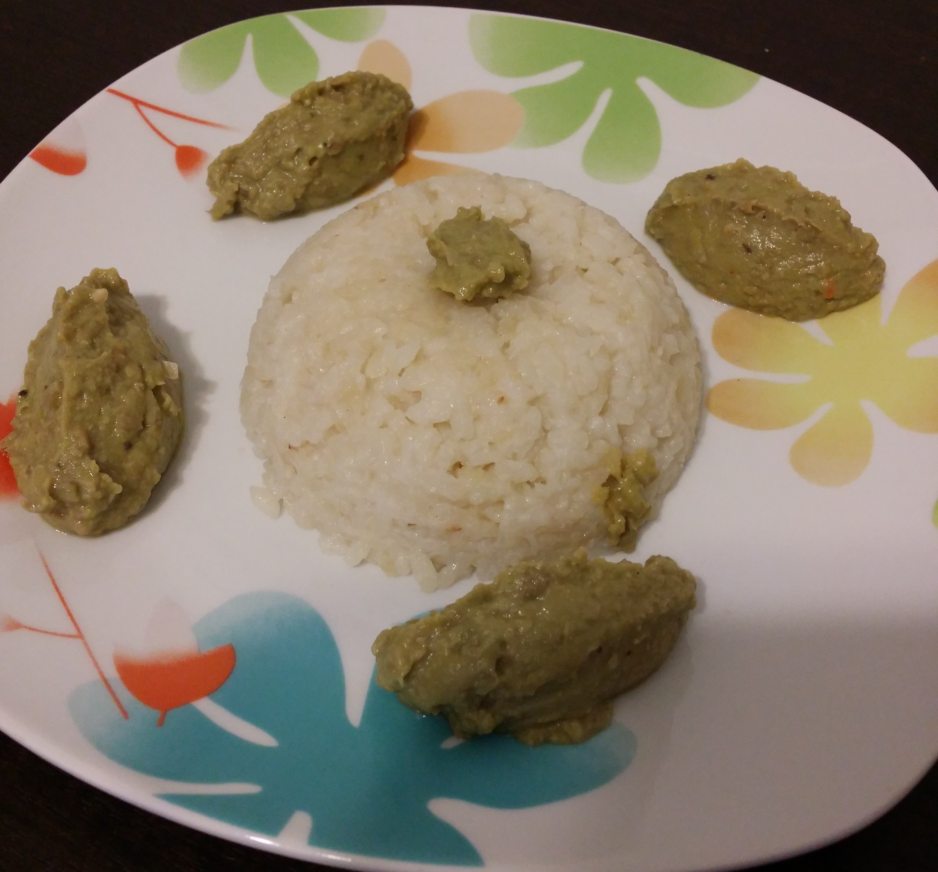 Ed ora impiattate, con un coppapapasta mettete al centro del piatto il riso e contornatelo di quenelle di fave e buon appetito………………………………..