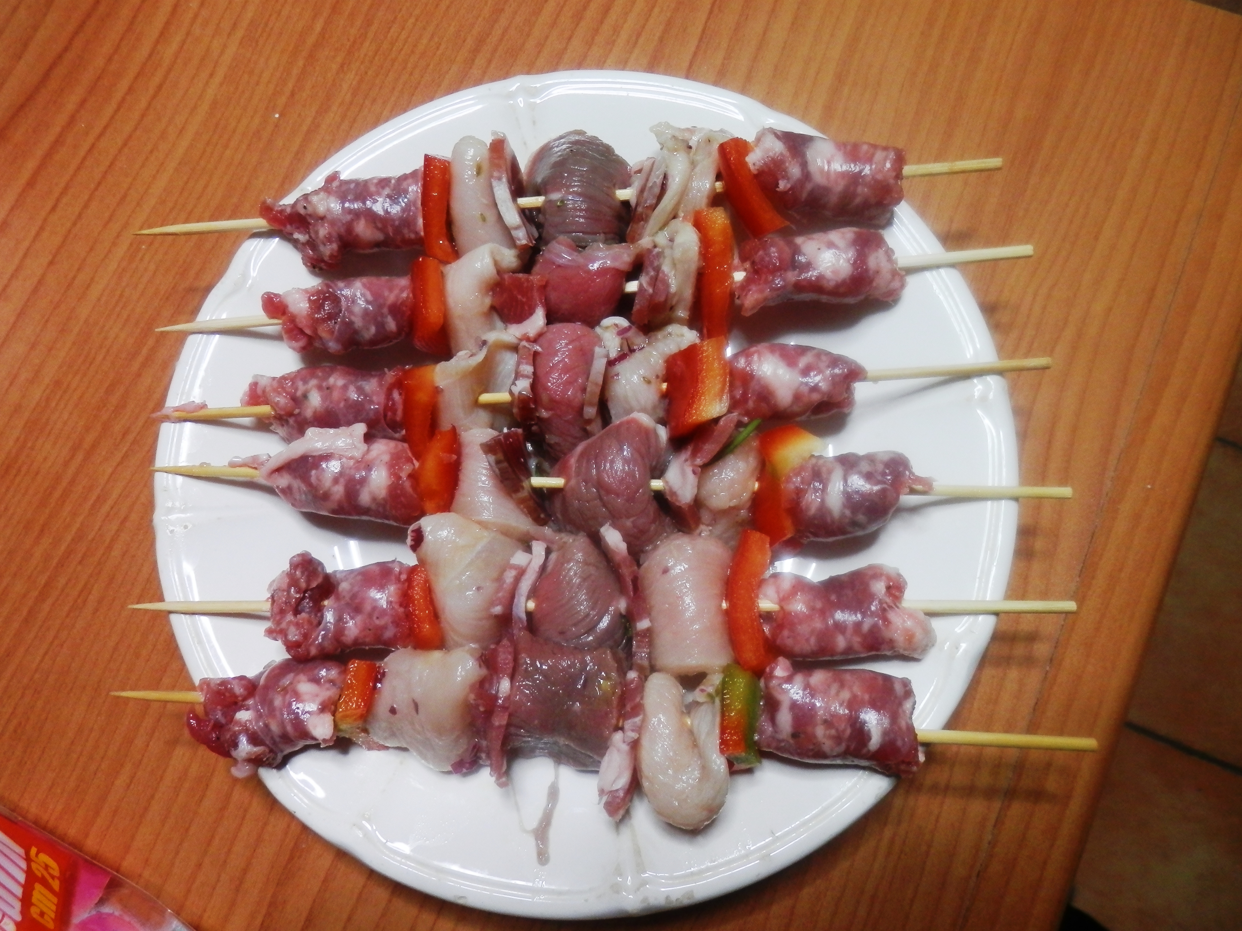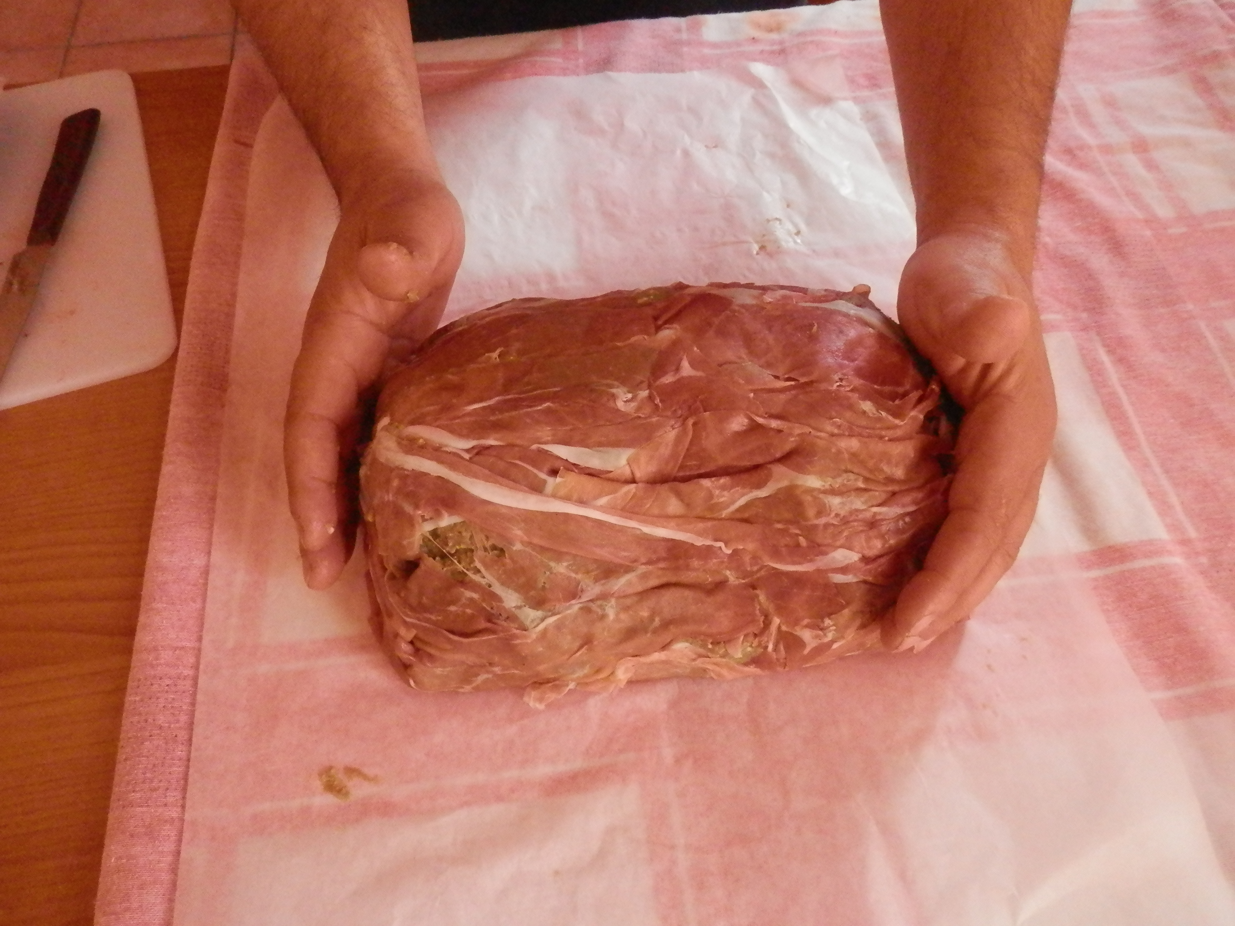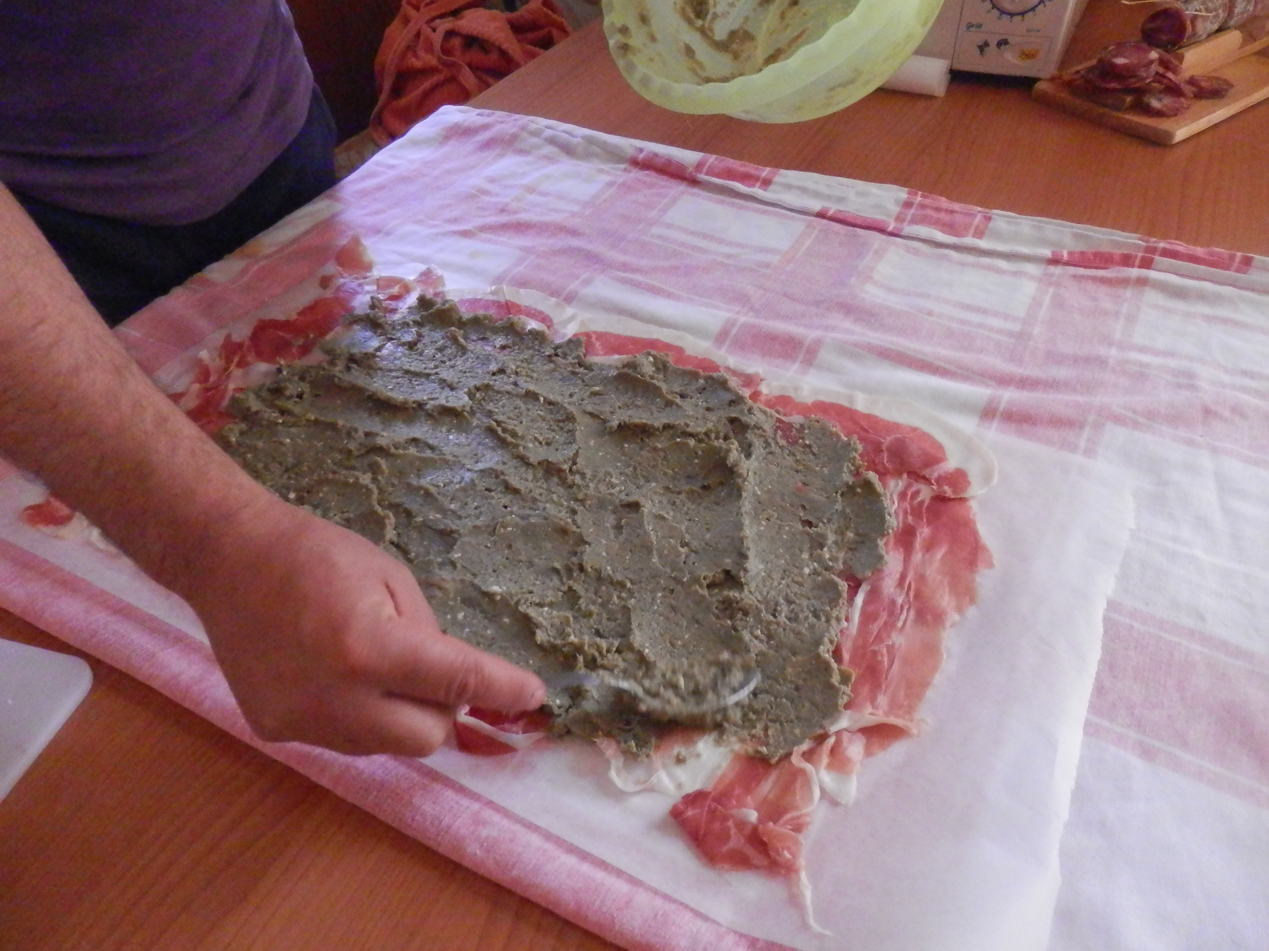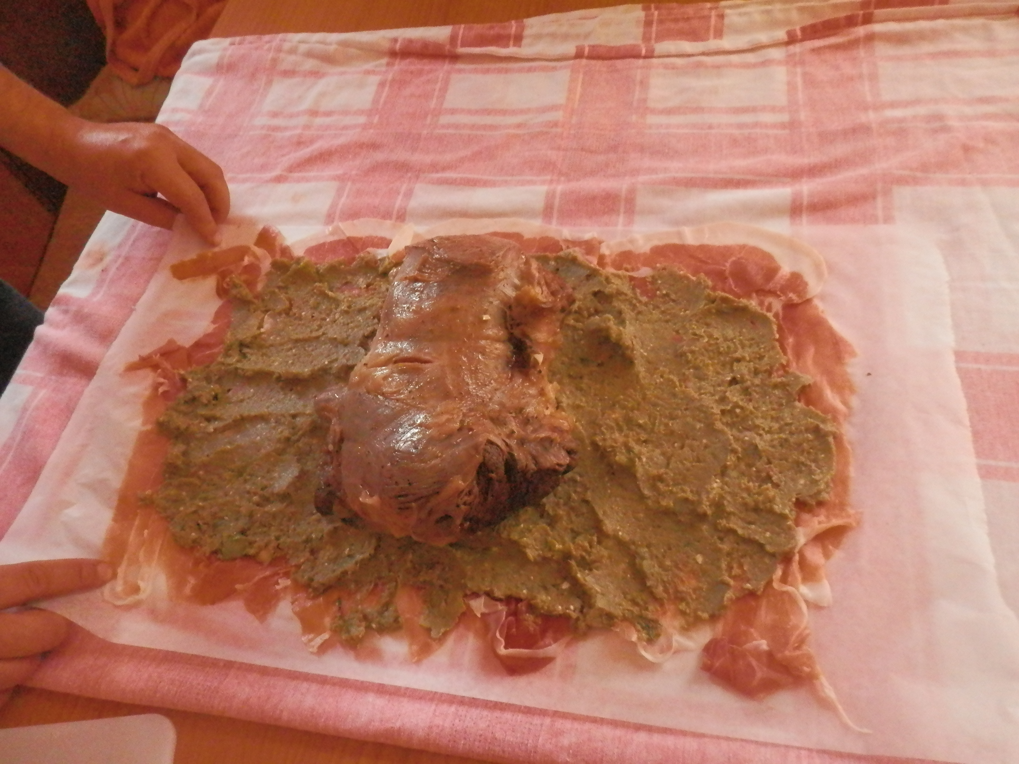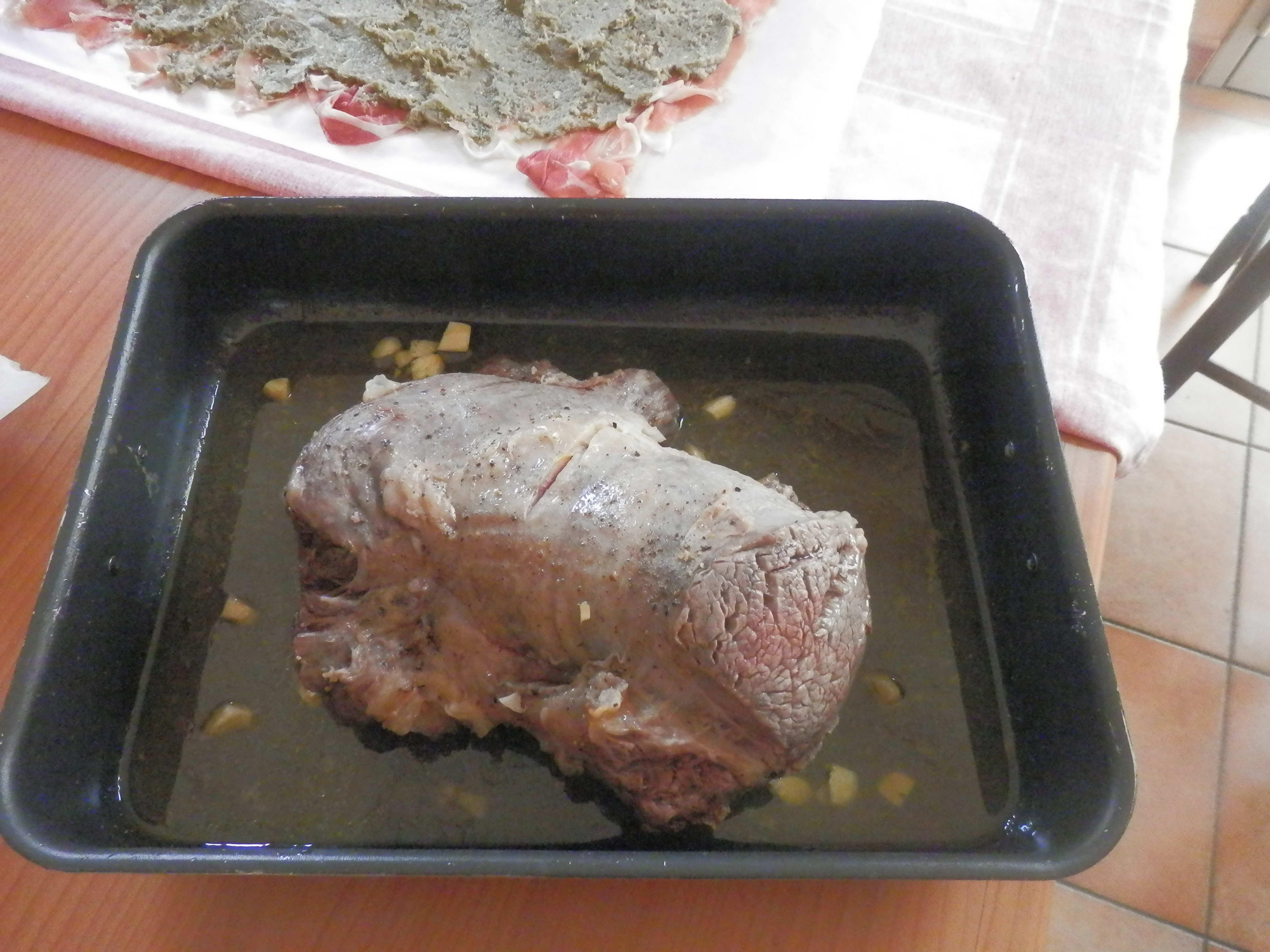 Tritare, il più finemente possibile, le acciughe insieme ai capperi (sciacquati. Io, generalmente, dopo averli tenuti sotto sale, ne metto qualche cucchiaio in un vasetto con aceto, in modo che sono già dissalati quando li devo usare), l’aglio e il prezzemolo.