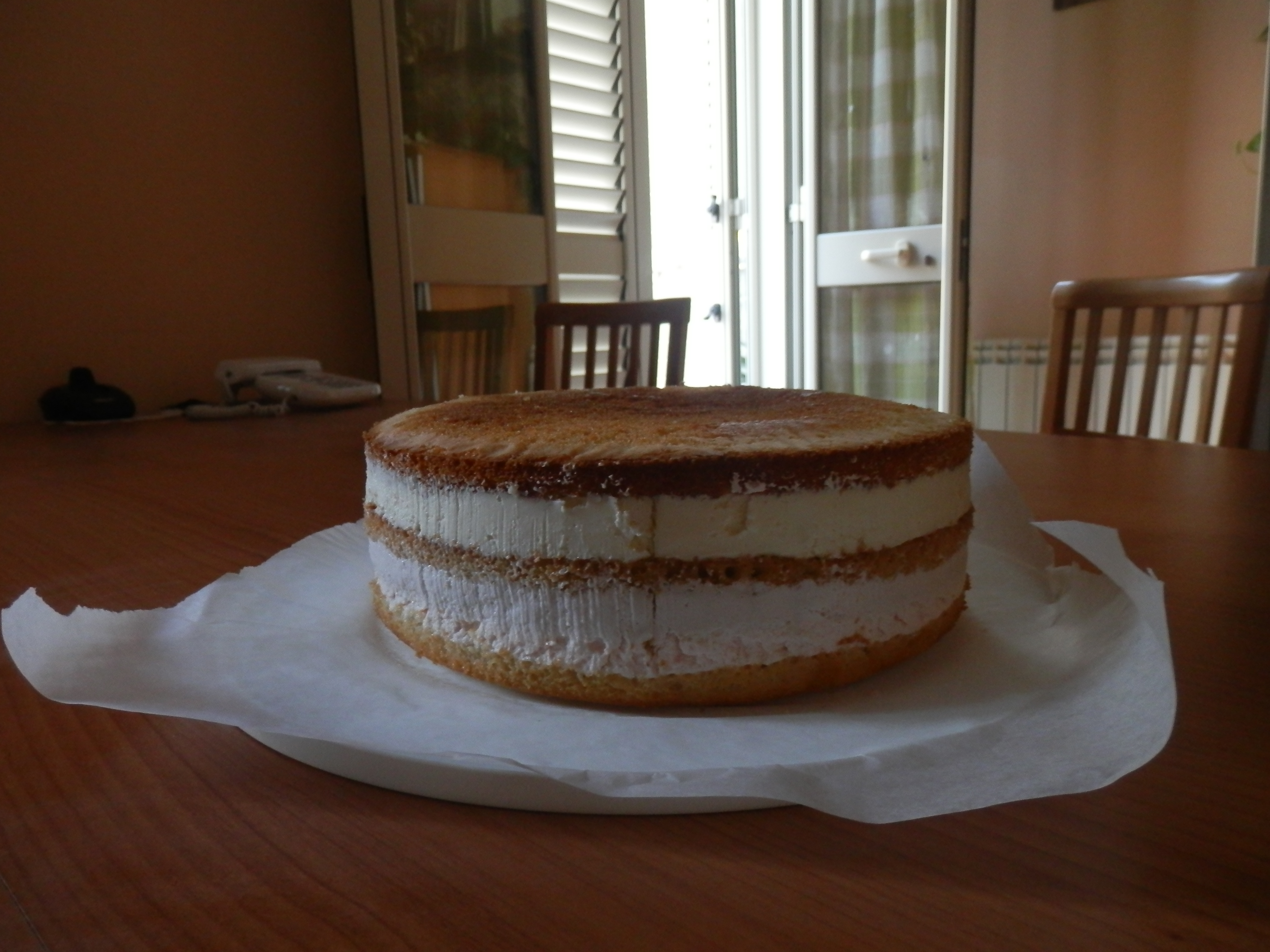 Ecco qui sotto la foto della torta assemblata, dopo una notte di riposo in frigo: