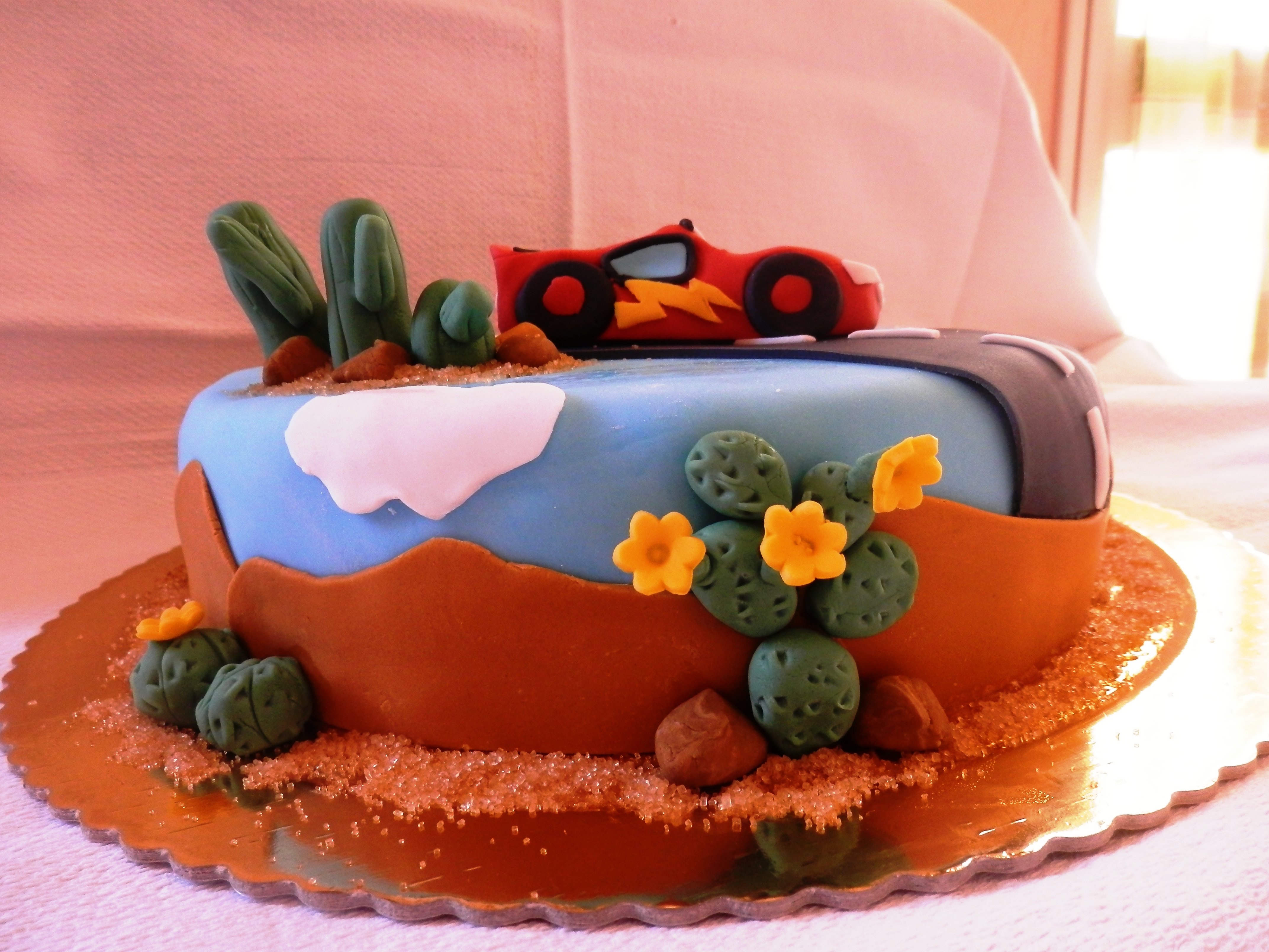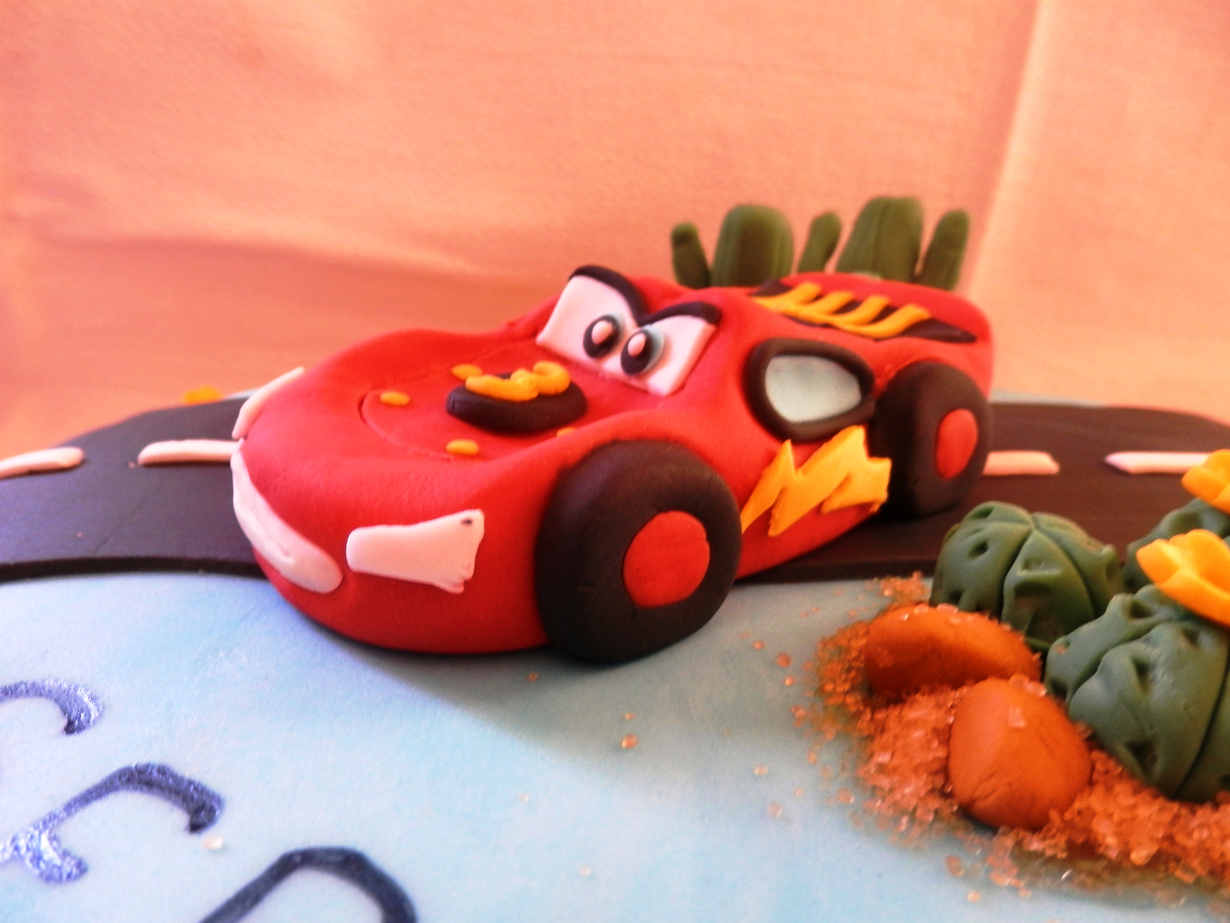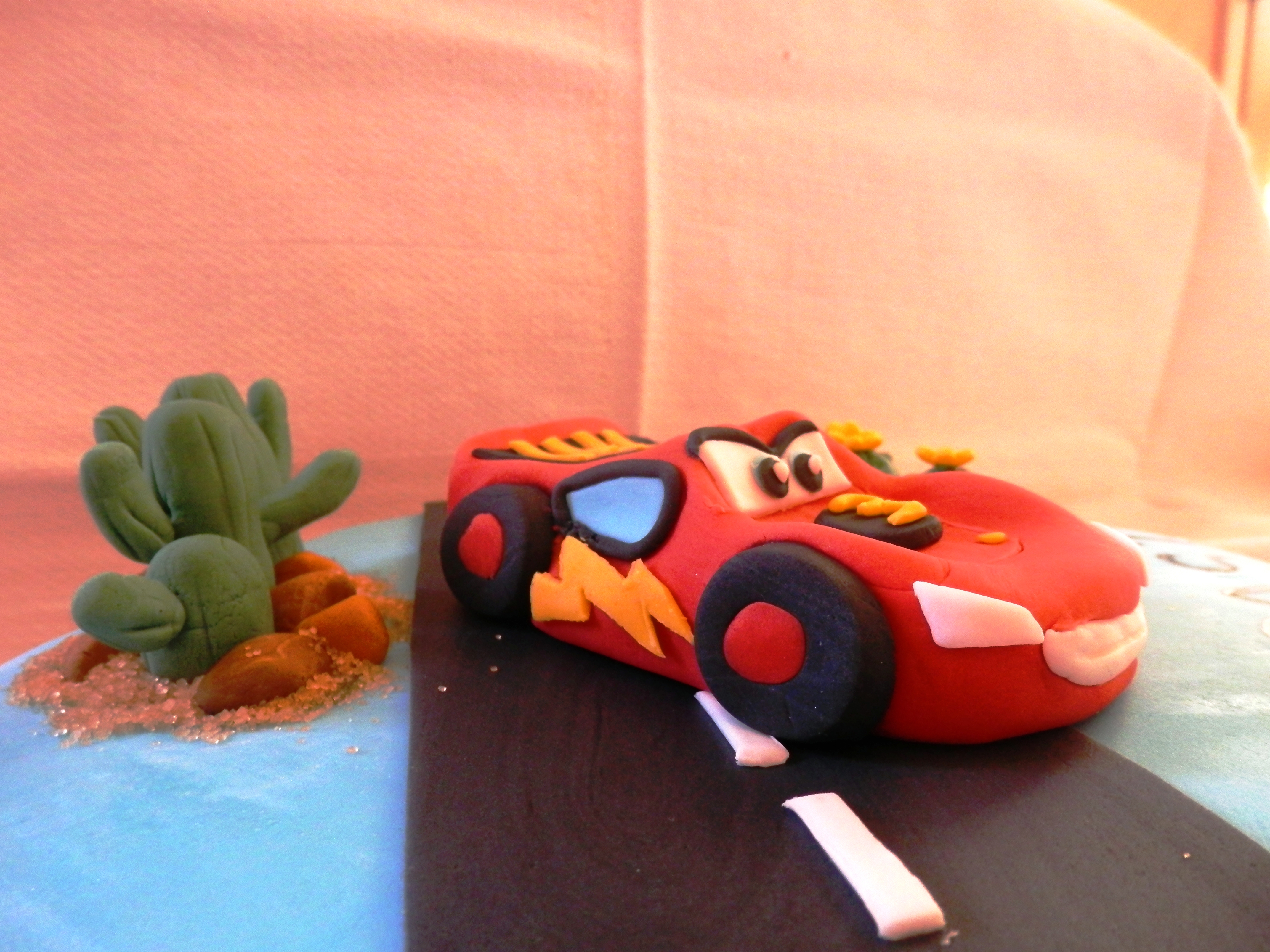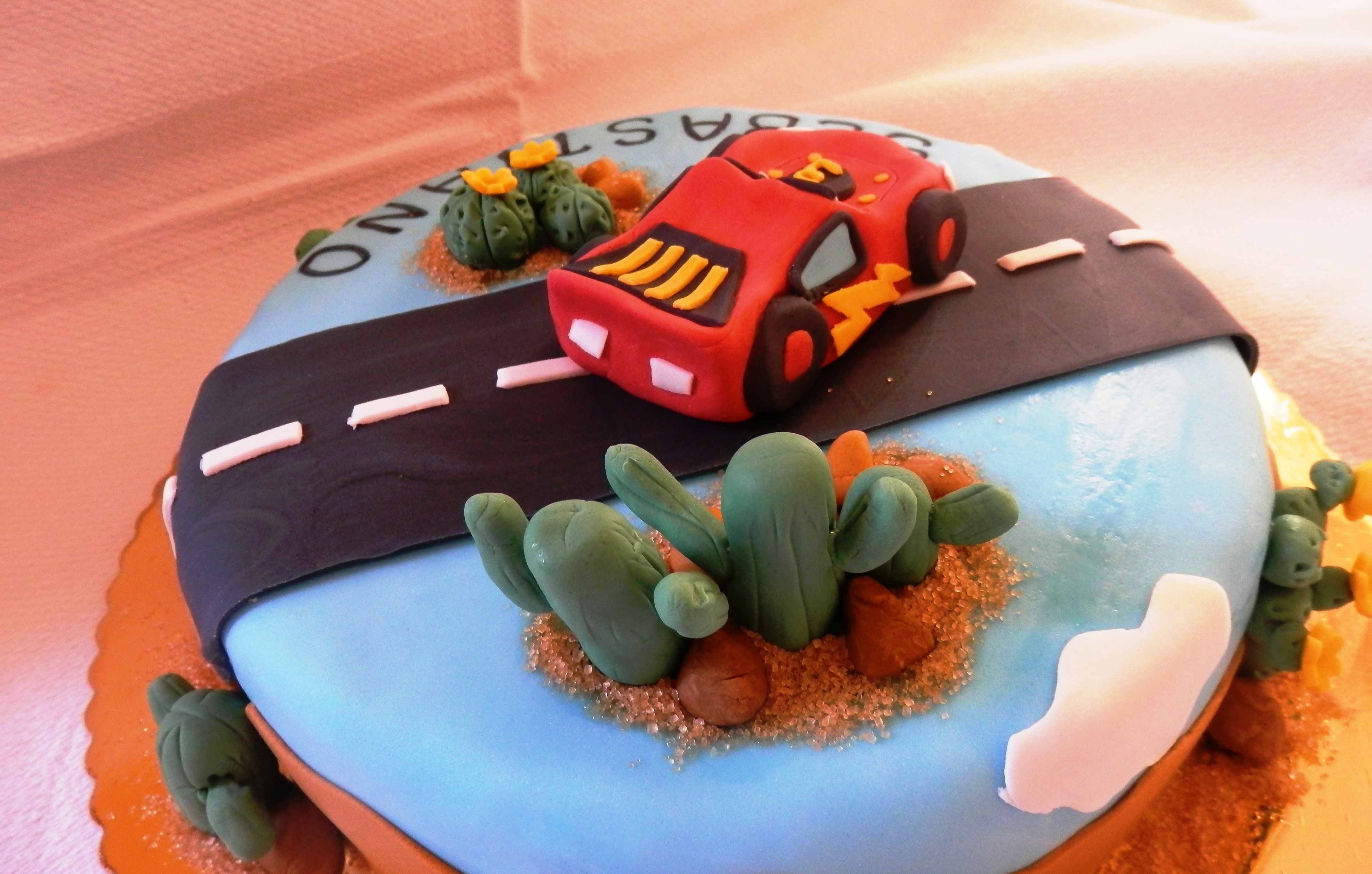 Quando Sebastiano ha cominciato a interessarsi alla televisione, il primo programma ad attirarlo è stato…Pippi Calzelunghe, c’era un canale dove lo trasmettevano in continuazione per intere mattinate e, siccome la cercava anche in altri orari, abbiamo dovuto registrarlo!!! Alla fine, non la potevo più vedere né sentire neanche nominare!!! Poi, crescendo, l’ha abbandonata e, tra tutti, si è appassionato a Cars, soprattutto a Saetta McQueen, per cui non potevo non fargli una torta con il suo soggetto preferito.